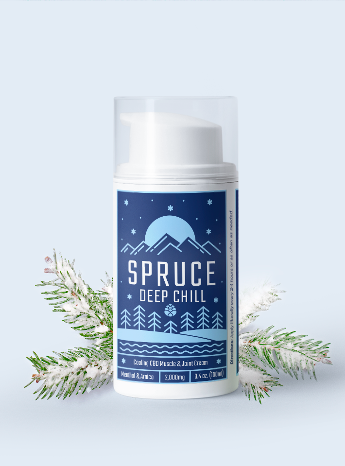 Spruce Deep Chill is formulated to provide our maximum relief for deep tissue and joint pain by combining a mega potent dose of our lab grade CBD, arnica for inflammation, and menthol and camphor for cooling relief while shea butter and coconut oil leaving your skin feeling soft and supple.
